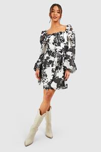 Bloemen Melkmeisjes Jurk Met Geplooide Buste - Chiffon jurken zijn het ultieme day & night kledingstuk. Je kan zo van kantoor door naar een avondje uit zonder eerst langs huis te moeten gaan om je om te kleden met deze must have. We hebben chiffon jurken in allerlei stijlen, lengtes, kleuren en designs, dus je zal er zeker één kunnen vinden waar je verliefd op wordt. Combineer je jurkje met enkellaarsjes en een leren jasje voor de ultieme casual smart look.
