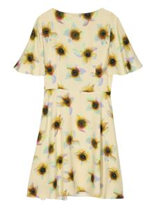 light yellow/multicolour all-over floral print pintuck detailing round neck flutter sleeves flared skirt straight hem above-knee length