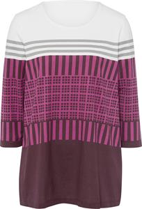 Op dit shirt met print vormen verschillende grafische patronen samen een mooi dessin met brede strepen. Flatteus, iets langer A-model met ronde hals en 3/4-mouwen.