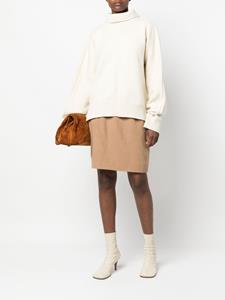 Valentino ready-to-wear, camel, wol, gesmockte details, high waist, verborgen sluiting aan de achterkant, lengte tot boven de knie, rechte zoom en volledige voering. .