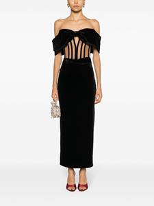 zwart fluwelen finish verborgen ritssluiting op de rug achtersplit rechte zoom volledige voering enkellengte