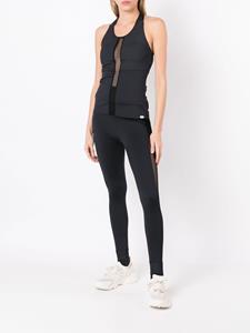 Zwart, stretch design, semi-doorzichtige vlakken, ronde hals, mouwloos, uitgesneden detail en rechte zoom.