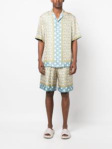 lichtblauw/geel zijde allover logoprint band met stippen elastische tailleband twee ingenaaide zijzakken paspelzak aan de achterkant