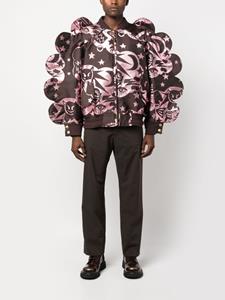 Chocoladebruin, poederroze, metallic garen, jacquard met patroon, geribbelde bandkraag, ritssluiting aan de voorkant, twee klepzakken aan de voorkant en lange en wijde mouwen .