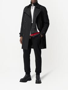 Gekartelde revers, epauletten, sluiting met dubbele rij knopen, twee ingenaaide zijzakken, taille met ceintuur, regenklep, voering met vintage ruiten en lange mouwen.