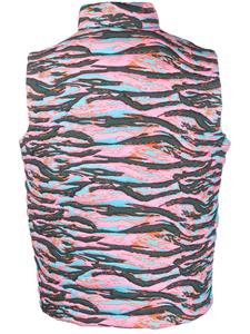 Roze, veelkleurig, katoen, gewatteerd effect, all-over grafische print, hoge hals, mouwloos, verborgen drukknoopsluiting en rechte zoom.