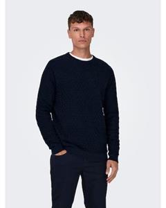Gebreide herenpullover van Only & Sons;Puur katoen;Nauwsluitende pasvorm;Model 'KALLE';Structuurpatroon;Ronde hals;Ruglengte bij maat M: 72 cm;Mouwlengte bij maat M: 72 cm