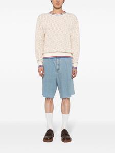 gebroken wit/beige katoenblend intarsia logo gestreepte afwerking ronde hals lange mouwen