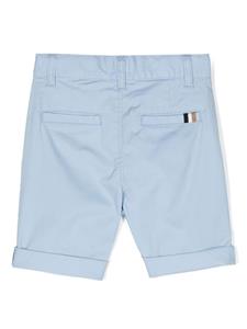 hemelsblauw stretchkatoen twill weving gestreept detail mid waist verborgen gulpsluiting riemlussen twee diagonale zijzakken twee paspelzakken aan de achterkant straight omgevouwen afwerking