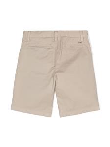 katoenblend knoop- en ritssluiting aan de voorkant beige dij-lengte twee paspelzakken aan de achterkant twee steekzijzakken gabardine geweven logo plakkaat riemlussen