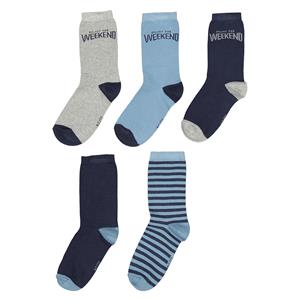 Details • Set van 5 paar kousen : 3 met Weekend motief + 1 gestreept + 1 effenSamenstelling en onderhoud • 75% katoen, 24% polyamide, 1% elasthan • Wassen op 30° • Niet strijken / geen bleekmiddel • Geen droogtrommel • Geen droogkuis • OEKO-TEX Standard 100. HetOEKO-TEX Standard 100 certificaat controleert textielproducten op schadelijke stoffen via een onafhankelijk, internationaal label.