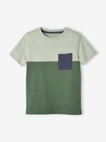 Als je eens wat anders wil dan een klassiek shirt, dan is dit shirt met twee kleuren precies wat je nodig hebt! Mooie trendy kleuren om te combineren met een jeans of een bermuda voor een sportwear look. Colorblock jongensshirt Ronde halslijn Contrasterend inzetstuk voor en achter, colorblock Contrasterende borstzak Korte mouwen Jongensshirt van zuiver katoen.