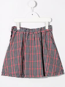 Elastische tailleband, gingham ruit, knoopsluiting aan de zijkant en rechte zoom.