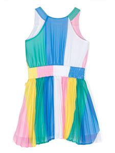 veelkleurig design met colourblocking verticale strepenprint ronde hals mouwloos elastische tailleband plooirok volledige voering