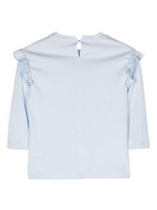 Lichtblauw, veelkleurig, katoen, teddybeerprint, logoprint op de voorkant, ruche details, ronde hals, knoopsluiting aan de achterkant, lange mouwen en rechte zoom.