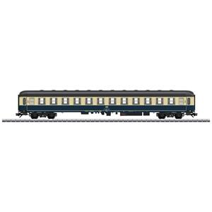 Voorbeeld: Sneltreinrijtuig type BM 234, 2e klas van de Deutsche Bundesbahn (DB). Oceaanblauw/ivoor-kleurige basiskleurstelling. Zoals in gebruik omstreeks 1980.