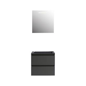 Badkamermeubel Boss & Wessing Pepper Acryl Wastafel Mat Zwart Zonder Kraangat Inclusief Spiegel Met LED Verlichting 60x55x46 cm Antraciet Dit prachtige badmeubel van Boss & Wessing, beschikt over een antraciet kleurige onderkast met een mat zwarte wastafel van acryl. De wastafel wordt geleverd zonder kraangat, maar wilt u toch beschikken over een kraan, kunt u kiezen voor de aanschaf van een inbouw kraan. Het badmeubel wordt geleverd inclusief spiegel met een geïntegreerde ledverlichtingsbaan. De afmetingen van het badmeubel zijn: breedte 60 cm, hoogte 55 cm en een diepte van 46 cm. De set is in meerdere afmetingen en verschillende kleuren beschikbaar. Let op: Het meubel wordt als flatpack geleverd, dit betekent dat u het meubel zelf in elkaar dient te zetten. De montagehandleiding en benodigdheden voor het badmeubel zijn inbegrepen. Badkamermeubel Boss & Wessing Pepper Acryl Wastafel Mat Zwart Zonder Kraangat Inclusief Spiegel Met LED Verlichting 60x55x46 cm Antraciet Hoogte: 55 cm Breedte: 60 cm Diepte: 46 cm Materiaal kast: Melamine Materiaal wastafel: Acryl Kleur: Antraciet Softclose: Ja Aantal lades: 2 Overloop: Nee Aantal kraangaten: Geen Incl spiegel: Ja Kolomkast: Optioneel (tegen meerprijs) Verlichting: Ja Fabrieks Garantie: 12 maanden