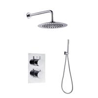 Inbouw Regendouche Set Boss & Wessing Wanduitloop Ronde Hoofddouche 30 cm Chroom De Boss & Wessing inbouw regendoucheset is een fraaie toevoeging aan uw badkamerruimte. Het betreft een inbouw regendoucheset die is gemaakt van messing en een afwerking heeft in de kleur chroom. Dat maakt deze regendoucheset uitstekend geschikt voor ieder badkamertype. De set bestaat uit een ronde hoofddouche, een inbouw thermostaatkraan, een ronde wanduitloop, een handdouche inclusief houder en een doucheslang. De ronde hoofddouche heeft een doorsnede van 30 cm en bevestigt u eenvoudig aan de wanduitloop, die een totale lengte van 35 cm heeft. De ronde hoofddouche is voorzien van siliconen sproeigaatjes waardoor ontkalken van de hoofddouche zeer gemakkelijk is. Met behulp van het kogelgewricht is de hoofddouche bovendien simpel te verstellen naar uw wens. De handdouche bewaart u eenvoudig in de meegeleverde handdouchehouder. In combinatie met de doucheslang (lengte van 150 cm) wordt deze fraaie inbouw regendoucheset compleet gemaakt. Specificaties Inbouw Regendouche Set Boss & Wessing Wanduitloop Ronde Hoofddouche 30 cm Chroom: Complete inbouw regendoucheset Merk: Boss & Wessing Kleur: chroom Materiaal: messing Ronde hoofddouche 30 cm Inbouw thermostaatkraan Ronde wanduitloop 35 cm Handdouche Doucheslang 150 cm Opsteekgarnituur Fabrieksgarantie: 5 jaar