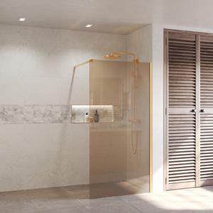 BWS Inloopdouche Pro Line Brons Glas 90x200 8mm Nano Coating Goud Profiel en Stang Geef uw douche een unieke look met de bronzen glasplaten van Boss & Wessing. Dit glas is behandeld met een antikalk Nano coating, dat ervoor zorgt dat vuil en kalk zich minder makkelijk hecht aan het glas. Het water loopt makkelijk van de wand en het schoonmaken zal een stuk gemakkelijker gaan. Houdt er wel rekening mee dat er geen bijtende schoonmaakmiddelen gebruikt mogen worden. De douchecabine is voorzien 8mm dik veiligheidsglas. De douchewand heeft geen vloerbevestiging, waardoor u de wand direct na het plaatsen transparant kunt afkitten. Bij deze set wordt de stabilisatiestang en het muurprofiel meegeleverd. Specificaties Inloopdouche Pro Line: Hoogte: 200 cm Breedte: 90 cm Kleur glas: Brons Glas dikte: 8 mm Soort glas: Nano Kleur profiel: Goud Fabrieksgarantie: 2 Jaar