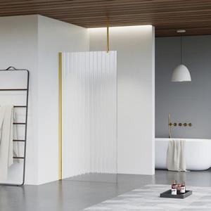 Fortifura Galeria inloopdouche - 40x200cm - ribbelglas - plafondarm - Geborsteld Messing PVD (Goud) SW797948/SW797910/SW804543 kopen℃ Sanitairwinkel.nl is dé Fortifura specialist met een groot assortiment Inloopdouches.
