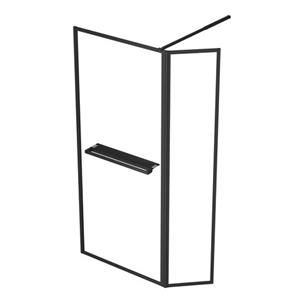 De douchewand dark edge shelf van aurlane is 90+40x200 cm en gemaakt van 5 mm dikke veiligheidsglas. Bestaande uit een vaste wand en een 40 cm brede draaibare flap. De structuur in mat zwart gelakt aluminium en zorgt voor een industriële uitstraling. De versterkingsstang is uitschuifbaar tussen de 70 en 100 cm. Omkeerbare installatie.