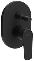 De Aqualine Lotta ééngreeps inbouwdouchemengkraan heeft een 2-weg. Verder is hij gemaakt van messing en uitgevoerd in het mat zwart. Hij wordt bediend door middel van een hendel. Deze hendel zit aan de voorkant van de kraan. Naast de hendel heeft hij ook een drukschakelaar. Hiermee kun je wisselen van handdouche naar hoofddouche. De afdekplaat van de douchemengkraan heeft een lengte van 12,5cm en een hoogte van 17,5cm. Verder wordt het verborgen lichaam niet meegeleverd bij de inbouw kraan. Door zijn kleur is hij goed te combineren met andere Aqualine Lotta producten in het mat zwart. Door dit samen te combineren kun je een mooi geheel creëren in de badkamer of in je toilet. * 2-weg inbouw kraan; * Messing; * Hendel; * Drukschakelaar; * Afdekplaat 12,5x17,5cm; * Exclusief verborgen lichaam; * Goed te combineren.