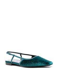 teal blue calf leather, velvet signature GG Supreme jacquard square toe leather trim branded leather insole flat leather sole buckle-fastening ankle strap
