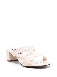 amandelbeige kalfsleer lakleren afwerking amandelvormige open neus T-bar bandje leren binnenzool met logo leren zool 45mm gewelfde hak slip-on stijl
