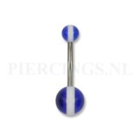 Navelpiercing met acryl balletjesGemaakt van chirurgisch staal; het staafje is verwisselbaar.1,6 x 10 of 12 mm x 5 + 8 mm balletje (dikte staafje x lengte staafje x dikte balletje)