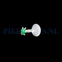 Labret met chirurgisch staal wietblad groenGemaakt van acryl; de bovenkant is verwisselbaar1,2 x 8 x 3 mm balletje (dikte staafje x lengte staafje x dikte balletje)