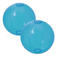 2x stuks opblaasbare strandballen Beach fun plastic transparant blauw 28 cm. Strand buiten zwembad speelgoed voor kinderen en volwassenen van 28 cm wanneer opgeblazen.
