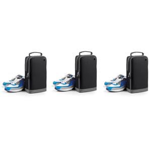 3x stuks zwarte schoenentas 8 liter voor 1 paar schoenen. Voorzien van grote ritssluiting. Inhoud: 8 liter. Formaat: 35 x 19 x 12 cm. Materiaal: 100% polyester 420D. Reistas/opbergtas voor schoenen.
