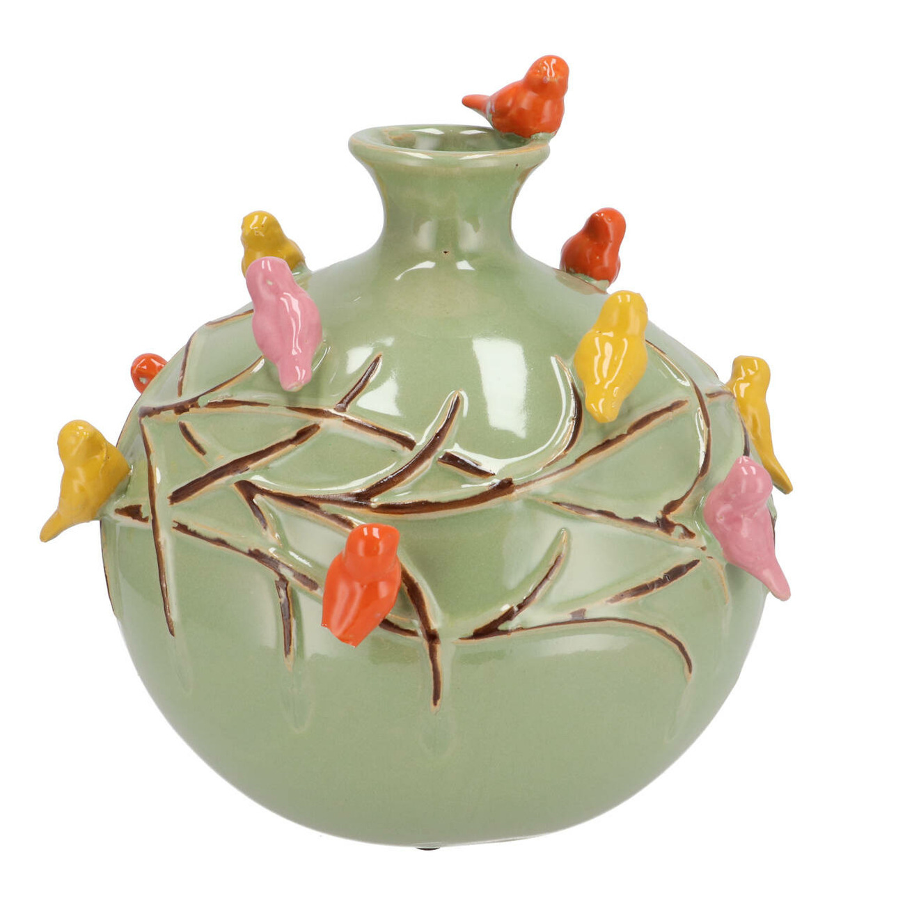 Breng een vleugje lente in huis met deze charmante vaas uit de Spring Birds-collectie. De bloemenvaas is uitgevoerd in een frisse kleur pistache groen en heeft een subtiel, speels design met vrolijk gekleurde vogeltjes erop. Gemaakt van hoogwaardig keramiek en een echte eyecatcher in ieder interieur. *Productkenmerken: Collectie: Spring Birds kleur: pistache groen Afmetingen: D29 x H28 cm Materiaal: Keramiek stijl: Fris, decoratief, natuurlijk* Een sfeervolle en stijlvolle toevoeging aan je interieur, perfect voor elk seizoen!