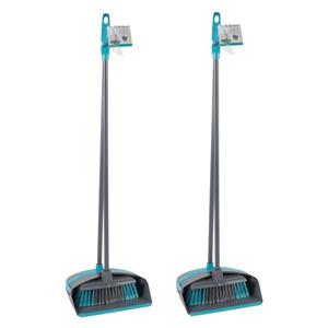 2x stoffer en blik met lange steel in de kleur blauw/grijs. Deze set heeft een lange steel waardoor je niet hoeft te bukken om iets op te vegen. De lengte is circa 93 cm cm. De stoffer en blik zijn gemaakt van kunststof en zijn gemakkelijk schoon te maken. Veeg je rommel makkelijk bij elkaar met deze handige stoffer en blik met lange steel. Materiaal: kunststof. Formaat: 93 x 24 x 26,5 cm. Merk: Alpina.
