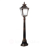 De met veel details vormgegeven padverlichting VIVIANA, creëert nostalgische charme rondom het huisIn het licht van padverlichting VIVIANA verkeert men direct in de waan, dat men in een sprookje terecht is gekomen, of anders een reis door het verleden heeft gemaakt. Want de antieke vormgeving van deze padverlichting maakt een bijzonder authentieke indruk. Doordat de ruiten van de lantaarnvormige kap gesatineerd zijn, ontstaat er bovendien geen reflectie.