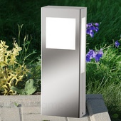 Fraaie sokkellamp Paulo van roestvrij staalPaulo is een blokvormige, roestvrijstalen lamp op een voetstuk met een symmetrische opening waar het licht aan alle vier kanten doorheen schijnt. Deze lamp is geschikt voor een inrit, een entree of op een terras. De felle verlichting doet tevens dienst als beveiliging. De buitenverlichting wordt in Duitsland vervaardigd uit materialen van de hoogste kwaliteit. De verlichting wordt goed en zorgvuldig afgewerkt en tijdens de productie wordt zonder uitzondering gebruik gemaakt van de modernste technieken.