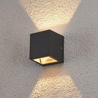 Kubusvormige buitenwandlamp Maurice De halogeen-buitenwandlamp Maurice waarborgt door haar elegante vorm langdurig plezier en kan buitrenshuis veelzijdig ingezet worden. Vermeldingswaardig zijn verder nog de indirecte lichteffecten die ontstaan, die niet alleen leuk staan, maar die ‘s nachts ook de nodige oriëntatie mogelijk maken. De beschermingsklasse IP54 biedt voldoende bescherming tegen het binnendringen van water en vuil. Energie-efficiëntieklasse: A++