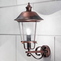 Buitenwandlamp MARIELLA verspreidt door het transparante acrylglas helder licht in de buitenruimte De kap van buitenwandlamp MARIELLA is omhoog gericht en maakt indruk door de nostalgische uitstraling, die niet in de laatste plaats door de lantaarnvorm en het zwart-koperen oppervlak wordt gecreëerd. Voor een sfeervolle ambiance rondom het huis. Energie-efficiëntieklasse: A++