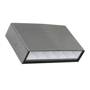Karline LED wandlamp van V4A roestvrij staal met uplight en downlight Karline heeft een minimalistisch, hoekig design dat zich discreet integreert in de architectonische stijl van een huis. Hij is gemaakt van roestvrij staal en is uitgerust met vast geïnstalleerde LED's die een warm witte verlichting genereren. Bovendien verspreidt hij zijn licht zowel aan de boven- als aan de onderzijde en genereert zo een niet-verblindende verlichting. Dankzij beschermingsklasse IP65 is hij stofdicht en beschermd tegen waterstralen, zodat hij de weersomstandigheden buiten de voordeur trotseert. Als u de LED-wandlamp Karline combineert met andere lampen uit haar serie, kunt u een harmonieuze totaalindruk creëren.