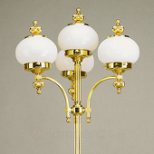 Vloerlamp DELIA zorgt voor een heldere en eveneens behaaglijke verlichtingDeze vloerlamp maakt een chique indruk door de combinatie van metaal met een uitstraling van gepolijst messing en kappen van gebold, mat-opalen glas. Het bijzondere punt is de voor een vloerlamp ongewone meerlichts-uitvoering die meer aan een antieke straatlantaarn of meerarmige lantaarnpaal doet denken, en bijzondere accenten in de woonkamer kan aanbrengen.Bij deze lampen staan kwaliteit, elegantie, kwalitatief hoogwaardige afwerking en duurzaamheid centraal. Hier resulteren de creativiteit van de ontwerper en het Oostenrijkse vakmanschap in producten die wereldwijd grote erkenning genieten. Alle verlichting van deze fabrikant wordt sinds 1948 voor 100% in Oostenrijk gemaakt; daardoor zijn vervangende onderdelen ook op lange termijn verkrijgbaar.
