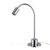 Led tafellamp Karen - een glanzend chroom juweelDe glanzende LED-tafellamp Karen is aantrekkelijk met modern design in gepolijste chroomuitvoering. Dankzij de flexibele lamparm geeft de lamp overal waar nodig doelgerichte bijverlichting. Deze mooi gevormde lichtbron wordt geleverd inclusief adapter. De lamp verspreidt warm wit LED-licht (2850 K) en draagt met een levensduur tot 50.000 uur bij aan een energie-efficiënt energieconcept. Met lens van 45 graden.