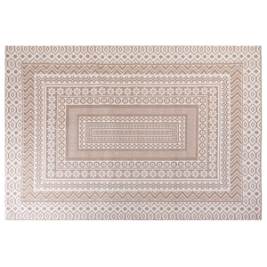 Tapijt met geometrisch patroon. Geef je interieur een gezellig karakter met dit jacquard geweven vloerkleed. Decoreer je kamer en voeg een zacht gevoel toe onder je voeten bij je bed of op de vloer in de woonkamer, met dit vloerkleed kan het allemaal. Het geometrische patroon is opvallend maar subtiel genoeg dat het bij elke interieurstijl zal passen.Details: Producttype: Laagpolig. Stijl: Modern. Kleur: Beige. Soort materiaal: Stof. Hoofdmateriaal: Jute. Overig materiaal: Polyester. Materiaal achterzijde: Katoen. Material Composition: 50% jute. Vorm: Rechthoek. Anti-Slip onderzijde: Nee. Dichtheid: 2200. Patroon: Geometrisch patroon. Geschikt voor vloerverwarming: Nee. Weefsel: Jacquard geweven. Afmetingen: Hoogte pool: 0.7 cm. Breedte: 160 cm. Lengte: 230 cm. Gewicht: 9 kg. Aanbod omvat: 1 x Vloerkleed. Belangrijkste eigenschappen: Perfect voor zowel slaapkamer als woonkamer, Past bij vele interieurstijlen, Gezellige uitstraling, Alleen voor gebruik in binnenruimtes, Hoge kwaliteit. Extra informatie: Let op: elk product kan variëren in kleur, patroon en formaat (+/_ 5-7 cm), Het product heeft wat tijd nodig om terug te keren naar de gewenste staat. Wij raden aan om het product zo snel mogelijk uit te vouwen en het 72 uur recht te laten trekken. Ook raden wij aan om zware gewichten aan beide uiteinde te leggen voor een beter effect. Onderhoudstips: Jute. 1.Schraap vuil eerst volledig weg bij hardnekkige vlekken, en maak daarna schoon met een vochtige, niet-afgevende doek van katoen. Wanneer nodig, gebruik een kleine hoeveelheid wasmiddel voor wol. Maak het kleed niet te nat en maak goed droog na reiniging. Gebruik alleen tapijtreinigers. Neem contact op met een expert bij het verwijderen van hardnekkige vlekken., 2.Stofzuig wekelijks met gemiddelde zuigkracht en een speciaal opzetstuk, met de richting van de pool mee., 3.We raden je aan het kleed nog een paar uur te luchten voordat het in gebruik wordt genomen., 4.Verwijder vlekken direct met behulp van een vochtige, niet-afgevende doek. Begin aan de rand en werk naar het midden van het kleed toe. Wrijf hierbij niet te hard., 5.Zover de opstelling het toelaat, draai het vloerkleed halfjaarlijks 180 ̊. Dit zorgt voor gelijkmatige slijtage en voorkomt kleurvervaging door zonlicht.