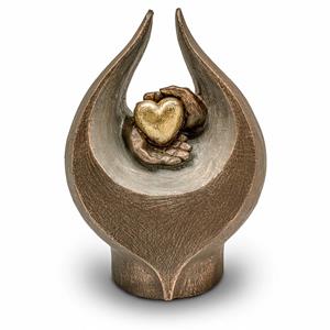 Vanuit diep innerlijk gevoel geheel handmatig vervaardigde keramische urn. Voor binnen en buitengebruik. Voor u en urnen-winkel Urnwebshop.nl gemaakt en afgewerkt door de bekende Limburgse urn-keramist Geert Kunen. Elke Art urn is een uniek asbestemmingskunstwerk. Kan voor EUR 40 extra aan de achter of voorzijde door hem handmatig in echt goudbrons gegraveerd worden. Uw Art Urn wordt gewaarmerkt en is voorzien van een echtheidscertificaat-vulwijzer. En kan aan de onderzijde eenvoudig zelf gevuld en versloten worden, middels een flexibele kunststof dop. Uw urn staat op rubber beschermdopjes.