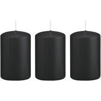 3x Zwarte cilinderkaarsen/stompkaarsen 5 x 8 cm 18 branduren. Rechte cilinderkaarsen/stompkaarsen zonder geur met gladde afwerking in de kleur zwart. U kunt meerdere kaarsen gebruiken als sfeermakers, bijvoorbeeld tezamen gepresenteerd op een kaarsenplateau. Aantal kaarsen: 3. Formaat per kaars: diameter 5 cm, hoogte 8 cm. Aantal branduren per kaars: 18 uur. Materiaal: wax/was, paraffine. Kleur: zwart. Type kleur: gedipt, wanneer de kaars opbrandt wordt de witte binnenzijde zichtbaar. Geurloze sfeerkaarsen cilinder/stomp kaarsen. Woondecoraties kaarsen versiering.