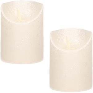 3x Creme parel LED kaarsen / stompkaarsen met bewegende vlam 10 cm. Creme parel wax stompkaars met bewegende vlam verlichting die de illusie geeft van echt kaarslicht. Deze kaars werkt op batterijen. Aantal kaarsen: 3x. Kleur: Creme parel. Formaat: 7,5 x 10 cm. Voeding: 3x AAA batterijen per kaars (niet inbegrepen).