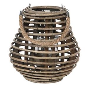 Beige houten modern windlicht van het merk Clayre & Eef Kaarsenhouder Sfeerverlichting Bestel Clayre & Eef Windlicht à 23x23 cm Bruin Hout Rond Kaarsenhouder