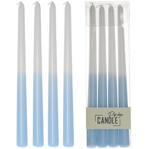 Breng een vleugje kleur in je leven met deze Dip Dye blauw/witte wax kaarsen.Mooie set van 4 stuks. De hoogte van de kaars is c. 30,5 cm.