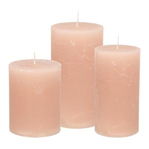 Stompkaarsen/cilinderkaarsen in de kleur taupe met rustiek effect. De kaars is gemaakt van wax. De set bestaat uit 3 kaarsen. Formaat ca. 5 x 8 cm (18 branduren), 7 x 9 cm (25 branduren) en 7 x 13 cm (36 branduren). De rustieke afwerking zorgt voor een luxe uitstraling. Ideaal te combineren met andere kaarsen in bijvoorbeeld andere kleuren. Tip: Wanneer er verschillende kaarsen naast elkaar worden aangestoken, zorg er dan voor dat deze minstens 10 cm van elkaar af worden geplaatst. Dit om de brandduur te bewaken en vervorming te voorkomen. , Dit artikel bestaat uit:, 1x Stompkaars/cilinderkaars - taupe - 5 x 8 cm - klein rustiek model, 1x Stompkaars/cilinderkaars - taupe - 7 x 9 cm - middel rustiek model, 1x Stompkaars/cilinderkaars - taupe - 7 x 13 cm - rustiek model