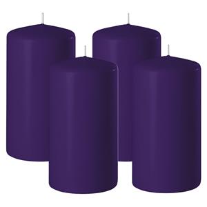 4x cilinderkaarsen/stompkaarsen of dikke kaarsen van D8 x H12 cm en 45 branduren. Rechte cilinderkaars/stompkaars zonder geur met gladde afwerking in een mooie kleur paars. U kunt meerdere kaarsen gebruiken als sfeermakers, bijvoorbeeld tezamen gepresenteerd op een kaarsenplateau. Formaat: diameter 8 cm, hoogte 12 cm. Aantal branduren: 45 uur. Materiaal: wax/was, paraffine. Kleur: paars. Geurloze sfeerkaarsen cilinder/stomp kaarsen. Woondecoraties kaarsen versiering.