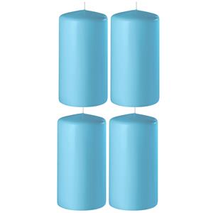 4x Turquoise cilinderkaarsen/stompkaarsen 6 x 10 cm 36 branduren. Rechte cilinderkaarsen/stompkaarsen zonder geur met gladde afwerking in de kleur turquoise. U kunt meerdere kaarsen gebruiken als sfeermakers, bijvoorbeeld tezamen gepresenteerd op een kaarsenplateau. Formaat: diameter 6 cm, hoogte 10 cm. Aantal branduren: 36 uur. Materiaal: wax/was, paraffine. Kleur: turquoise. Aantal kaarsen: 4. Geurloze sfeerkaarsen cilinder/stomp kaarsen. Woondecoraties kaarsen versiering.